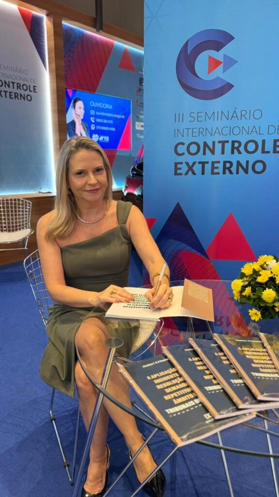 Como forma de celebrar esse momento tão especial – não só para a autora, como para todos os integrantes deste MPC/BA –, e em harmonia com a temática abordada em sua obra, foi promovida uma tarde de autógrafos durante o primeiro dia do III Seminário Internacional de Controle Externo (21/08/2025), evento realizado em comemoração aos 110 anos do TCE/BA e promovido por este em parceria com o Instituto Rui Barbosa – IRB.