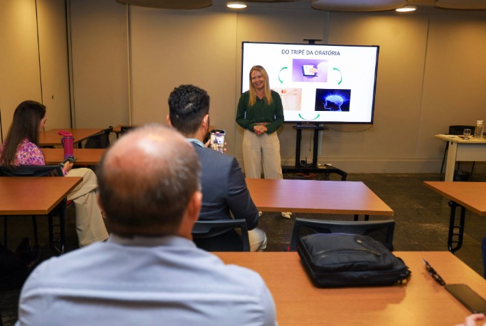 A proposta do curso é conciliar os aspectos teóricos da oratória com elementos práticos e cotidianos, abordando questões como postura, vestimenta e uso de instrumentos na fala, de modo a garantir uma comunicação mais segura, expressiva e eficaz.