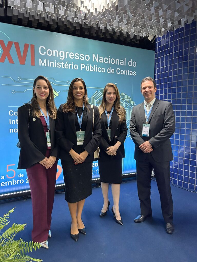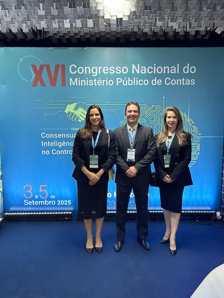 Os membros do MPC Camila Luz, Erika Almeida, Maurício Caleffi, Danilo Andrade, e a assessora Marcella Teixeira, participaram da cerimônia de abertura do XVI Congresso Nacional do Ministério Público de Contas, em Minas Gerais. O evento, que tem como tema central “Consensualismo e Inteligência Artificial no Controle Externo”, celebra os 40 anos da Associação Nacional do Ministério Público de Contas (Ampcon).