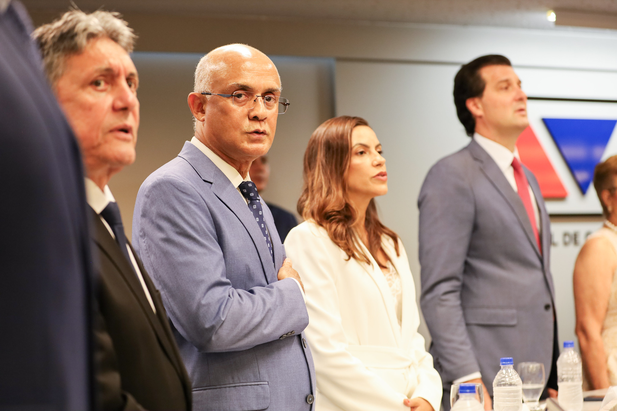 Em 04/02/2026, a Procuradora-geral de Contas, Camila Luz; acompanhada das assessoras Elisa Barreto, Joselma Baptista, Marcella Teixeira e Maria Luiza Mesquita, além do Chefe de Gabinete Bernardo Krushevisky, compareceram à cerimônia de posse solene do novo Conselheiro Otto Filho, que ocorreu no Auditório Conselheiro Lafayette Pondé do TCE/BA.