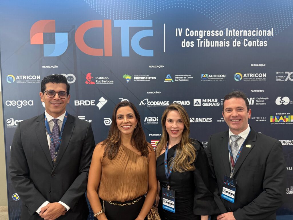 Os Procuradores Camila Luz, Erika Almeida, Marcel Siqueira e Maurício Caleffi, acompanhados pelos assessores Bernardo Leite e Victória Gonçalves, participaram do IV Congresso Internacional dos Tribunais de Contas, que aconteceu entre os dias 2 a 5 de dezembro de 2025, em Florianópolis/SC.